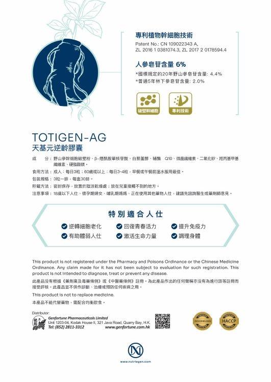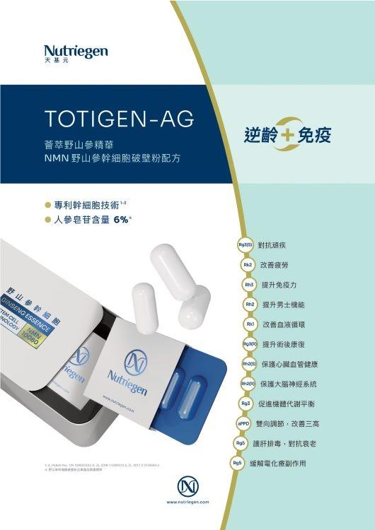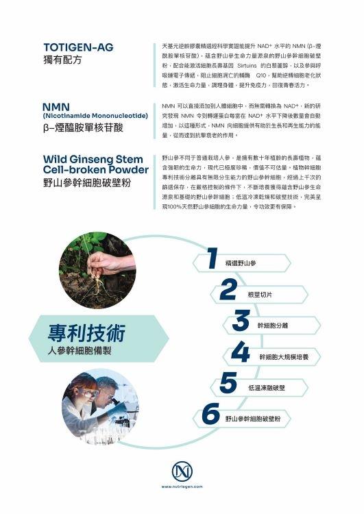 天基元 NUTRIEGEN TOTIGEN-AG 逆齡膠囊精選經科學實證,蘊含野山參生命力量源泉的野山參幹細胞破壁粉,
