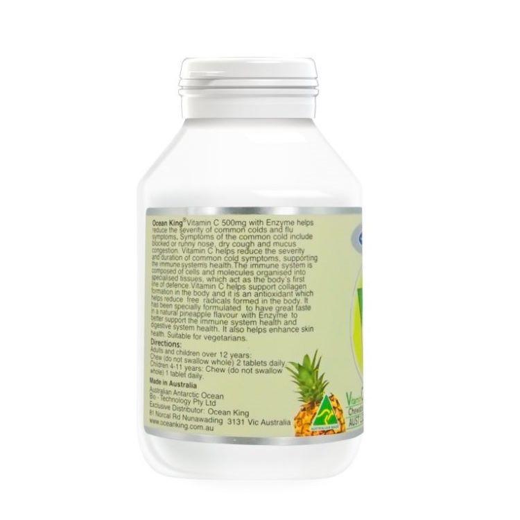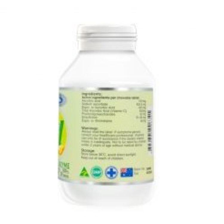 維生素C有助於降低常見感冒症狀的嚴重程度和持續時間,支援免疫系統健康。 維生素C有助於支援體內膠原蛋白的形成,它是一種抗氧化劑,有助於減少體內形成的自由基。 加入酵素配方,採用澳洲菠蘿風味,味道清香天然。 幫助維護免疫和消化系統健康,還有助增強皮膚健康。